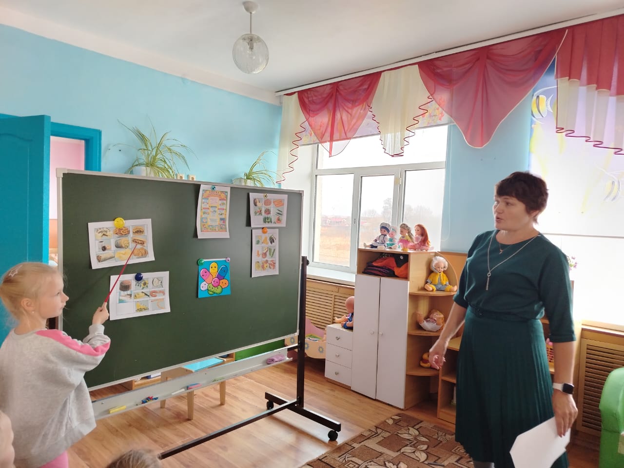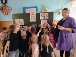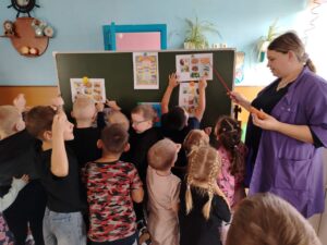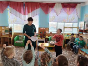 С детьми вспомнили пословицы о питании, побеседовали о том, сколько раз в день нужно принимать пищу, какой режим питания у нас в детском саду, о полезных и вредных продуктах, поиграли в дидактическую игры: «Полезные и вредные продукты», «Что это?», в тихий час познакомились со сказками: «Лимончик», «Молоко, Йогурт и Кефир», «Весной на даче».