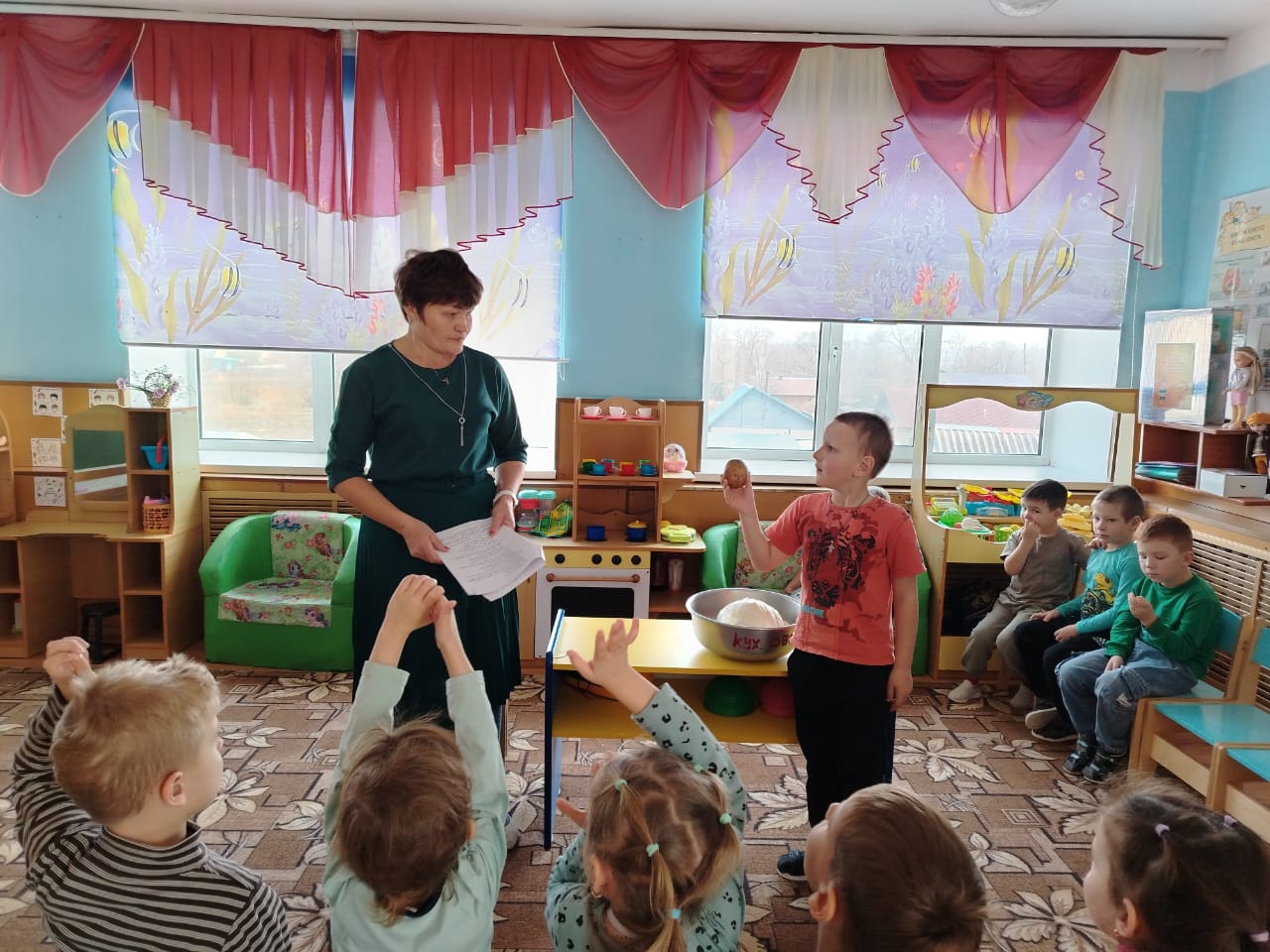 Чтобы сформировать у детей представление о необходимости заботы о своём здоровье, и в первую очередь о важности правильного питания, как составной части сохранения и укрепления здоровья, с детьми старшей группы сегодня провели познавательный час, где заведующий хозяйством нашего детского сада, Титова Юлия Евгеньевна показала и рассказала из каких полезных продуктов наши повара готовят нам вкусные щи и салаты, супы и каши.