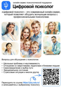 Рады сообщить о запуске нового сервиса психологической поддержки обучающихся – «Цифровой психолог», возможности которого уже доступны всем родителям (законным представителям) обучающихся, немного позже за психологической помощью смогут обратиться Ваши дети.