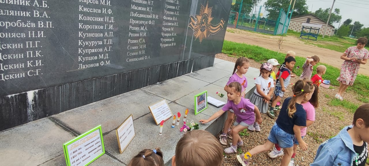 3 декабря в России отмечается памятная дата — День Неизвестного Солдата. Это дата, которая объединяет память о всех российских и советских воинах, погибших в боевых действиях на территории страны или за её пределами.Это дань благодарности всем, кто погиб на фронтах, чьи могилы безымянны. В этот день с детьми средней и старших групп была проведена тематическая беседа, где дети узнали о символе вечной памяти, слушали сказку «О неизвестном солдате», прослушали исполнение песни «Журавли», возложили цветы у «Стены Памяти» нашим воинам-односельчанам, почтили погибших минутой молчания». После чего дети изобразили символ памяти-Вечный огонь. Пусть этот огонь горит вечно в памяти каждого о солдатах не вернувшихся с войны.