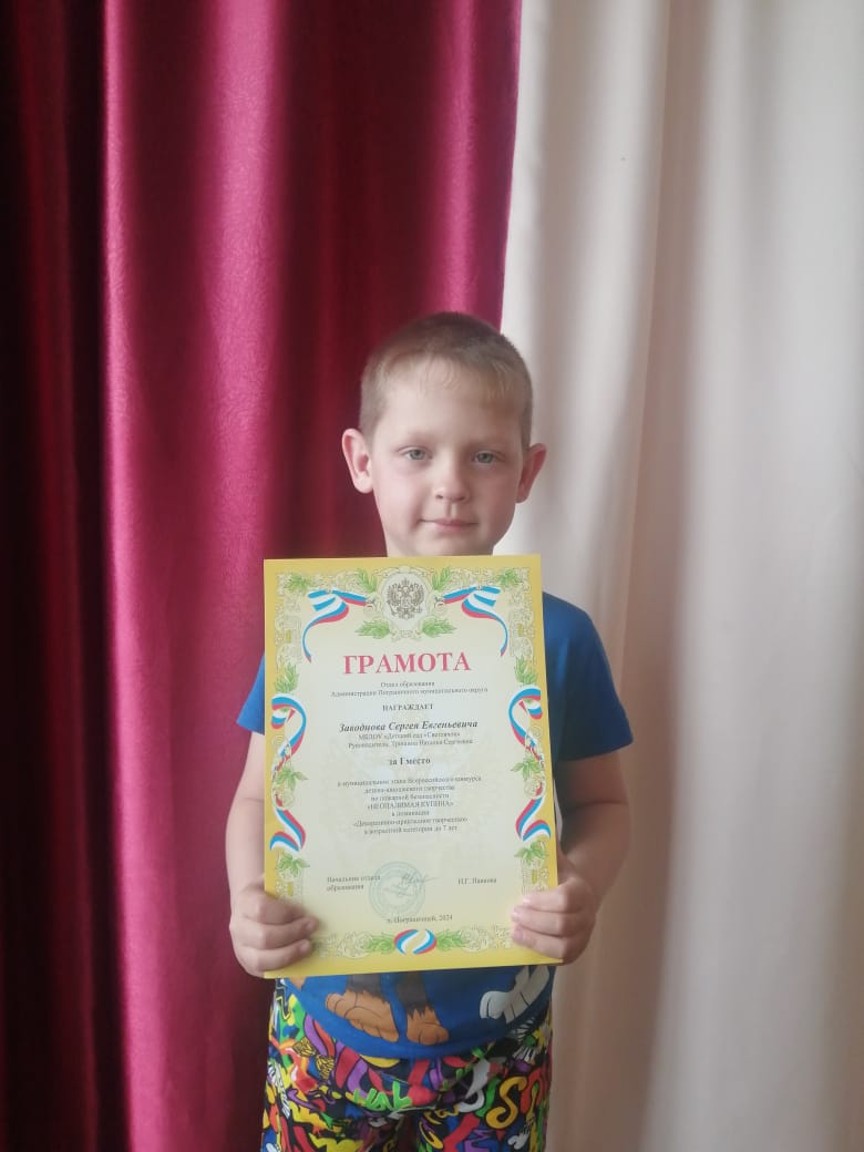 Подведены итоги муниципального этапа Всероссийского конкурса детско-юношеского творчества по пожарной безоапсности «Неопалимая Купина». На муниципальный этап представленно 102 работы из образовтаельных учреждений округа. Творческие работы выполнены воспитанниками и обучающимися в возрасте от 3 до 14 лет. При оценке конкурсных работ учитывался творческий подход, соответствие темы пожарной безопасности, новаторство и оригинальность, эстетический вид работы и техника исполнения. По итогам оценки комиссии опредены победители и призеры. Среди победителей есть и наши воспитанники: Заводнов Сергей занял первое место в номинации «Декоративно-прикладное творчество», а Милов Максим третье место в номинации «Технические виды творчества». Руководителем ребят является воспитатель ,Трошина Наталья Сергеевна. Работы победителей направлены на региональный этап конкурса.